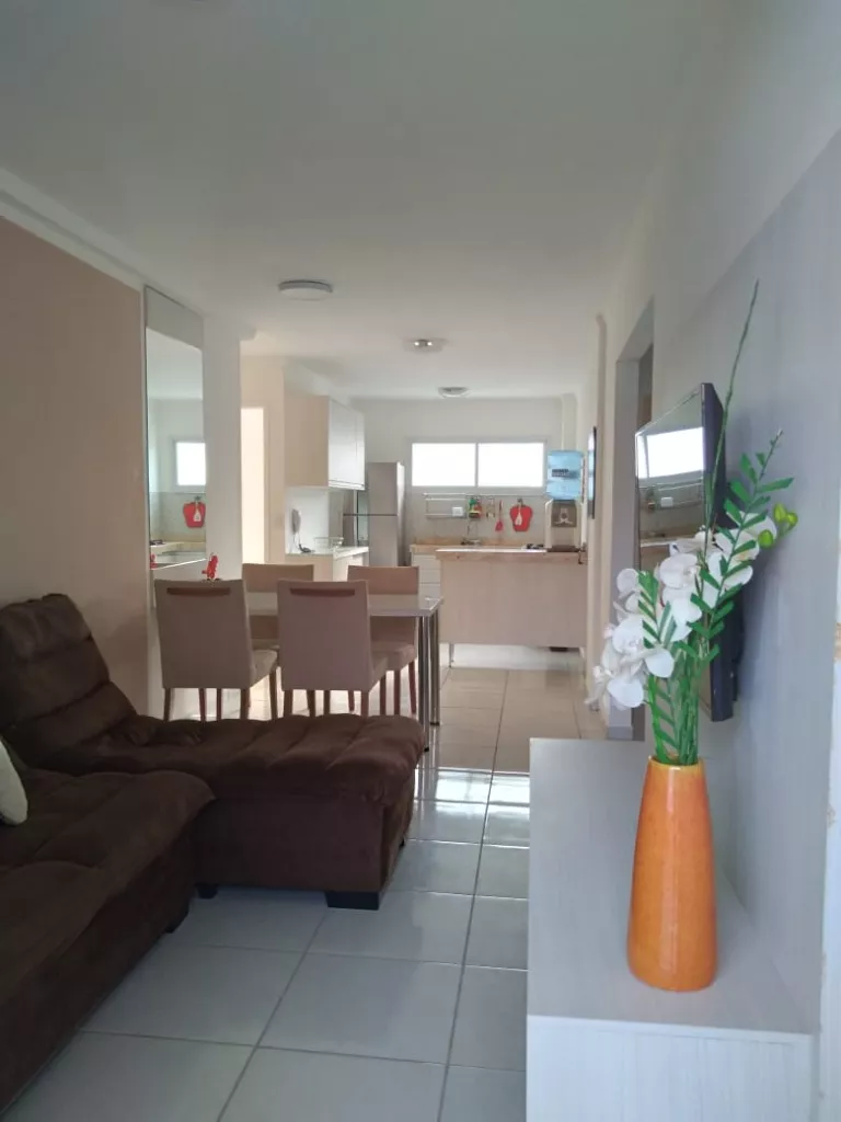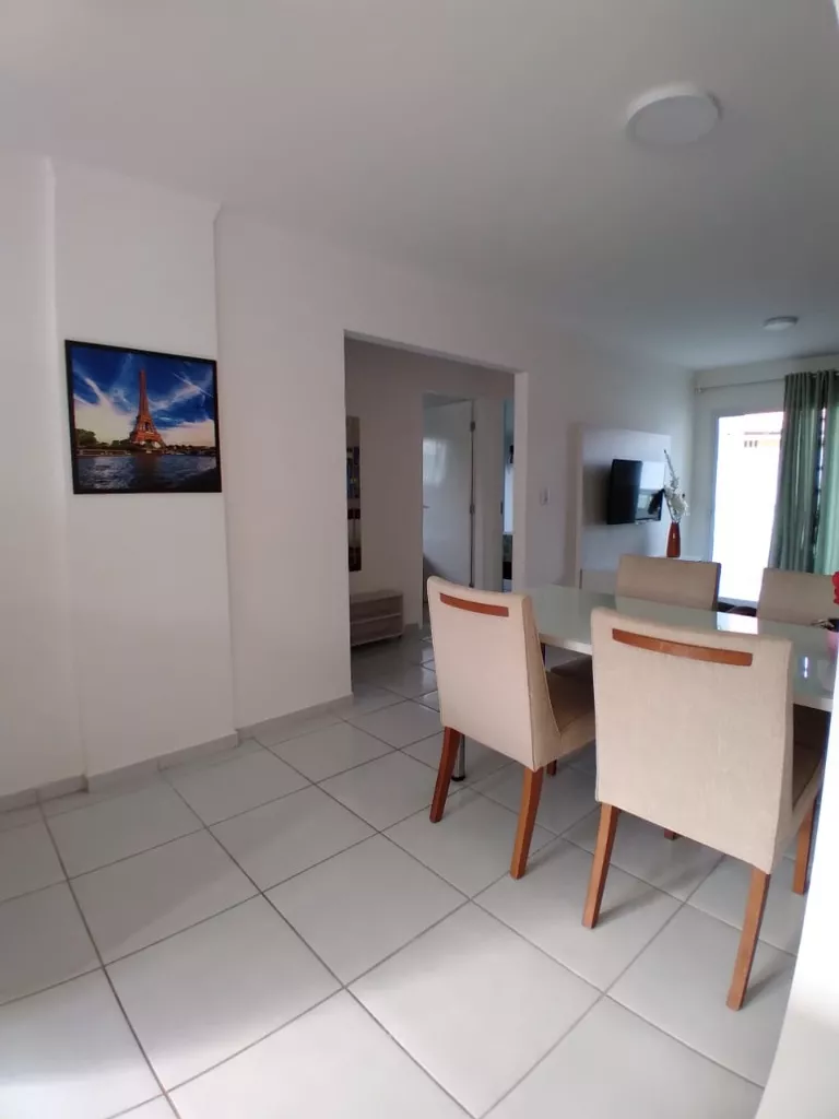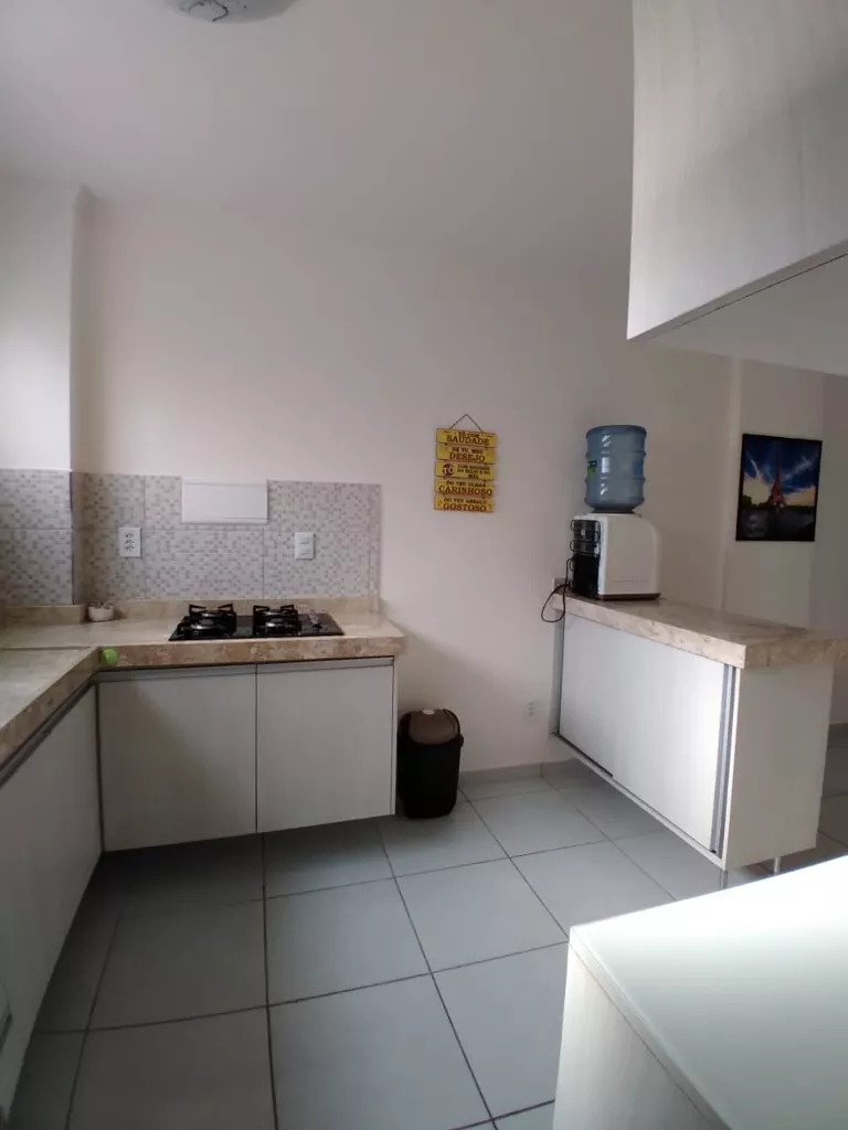 Este belo imóvel oferece: duas salas integradas (estar e jantar), uma cozinha projetada e lindamente equipada com utensílios e eletrodomésticos para sua conveniência, dois quartos mobiliados, uma suíte aconchegante e mobiliada, uma linda varanda também mobiliada onde você pode apreciar o pôr do sol, uma garagem coberta e um banheiro social bem planejado. O mobiliário inclui: armários de cozinha, mesa de jantar, mesa de centro, sofá de três lugares, poltronas, rack e painel de TV (nas salas e suíte), kit varanda, quartos com camas de solteiro, guarda-roupas projetados, suíte máster com cama de casal, armário planejado, ar condicionado, TV e chuveiro elétrico.